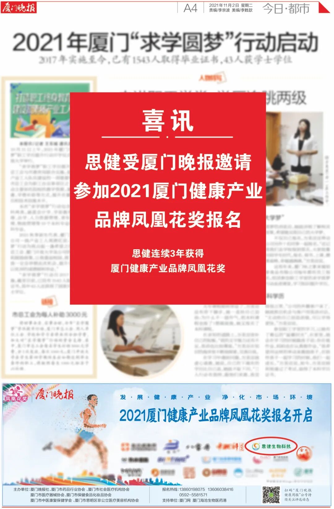 思健連續(xù)3年獲得廈門健康產業(yè)品牌鳳凰花獎